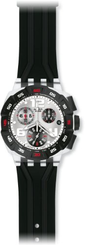 Plastic case. Black plastic bracelet. Silver dial with chronograph and date display at 6 o'clock. Black bezel with tachymeter. Plastic crystal. Tang clasp. 41mm case diameter. 15.3mm case thickness. Quartz movement. Water resistant at 30 meters (100 feet). Quartz movement Case diameter: 41mm Chronograph Plastic Water-resistant to 30 M (99 feet)